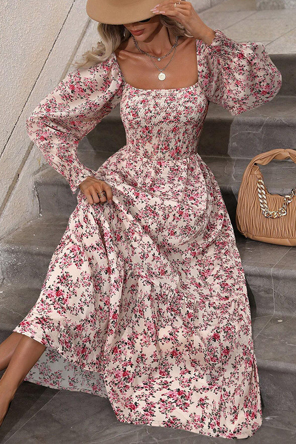 - Fashion Smocked Chest Long Sleeve Casual Dress