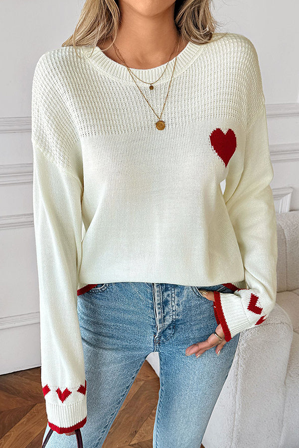 Heart Design Round Neck Casual Tops