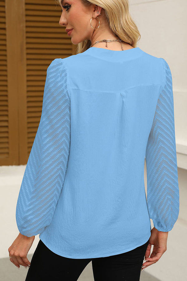 • Lace Patchwork V Neck Casual Tops