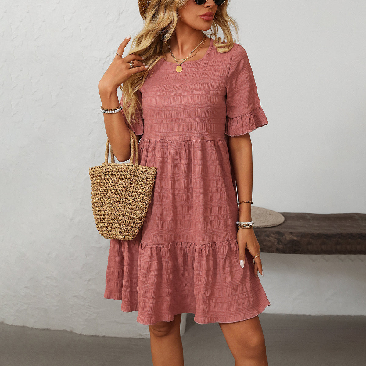 - Fashion Cute Ruffle Hem Mini Dress