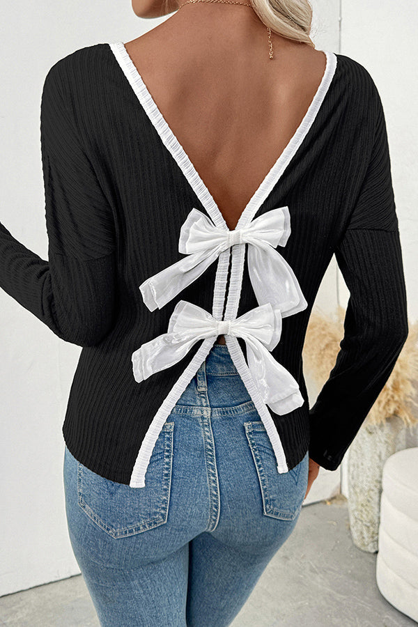 Bow Back Color Block Casual Tops