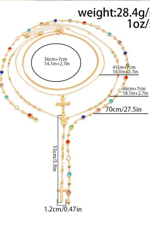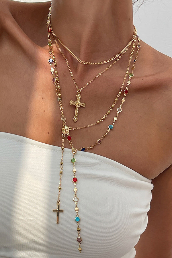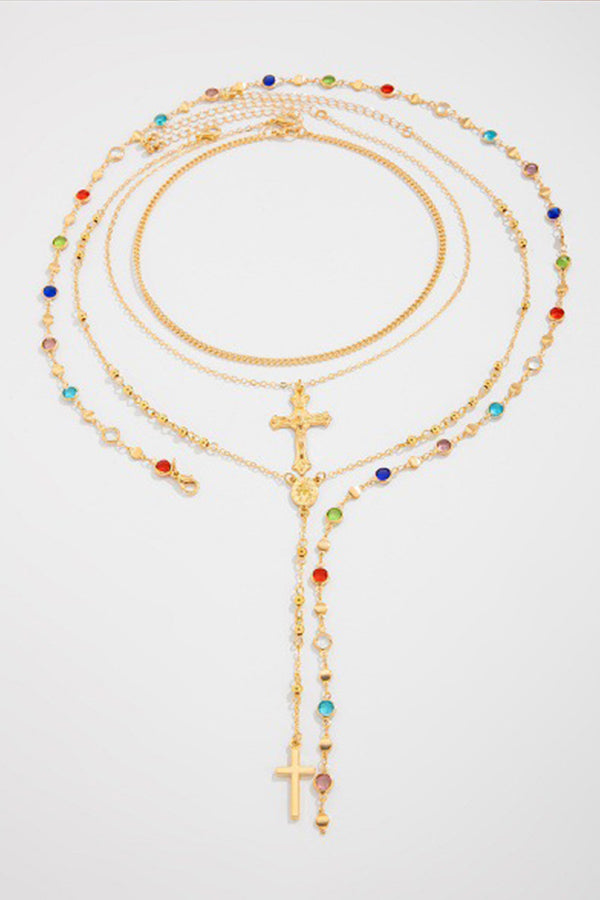 - Colorful Crystal Vintage Metal Cross Pendant Y-Necklace