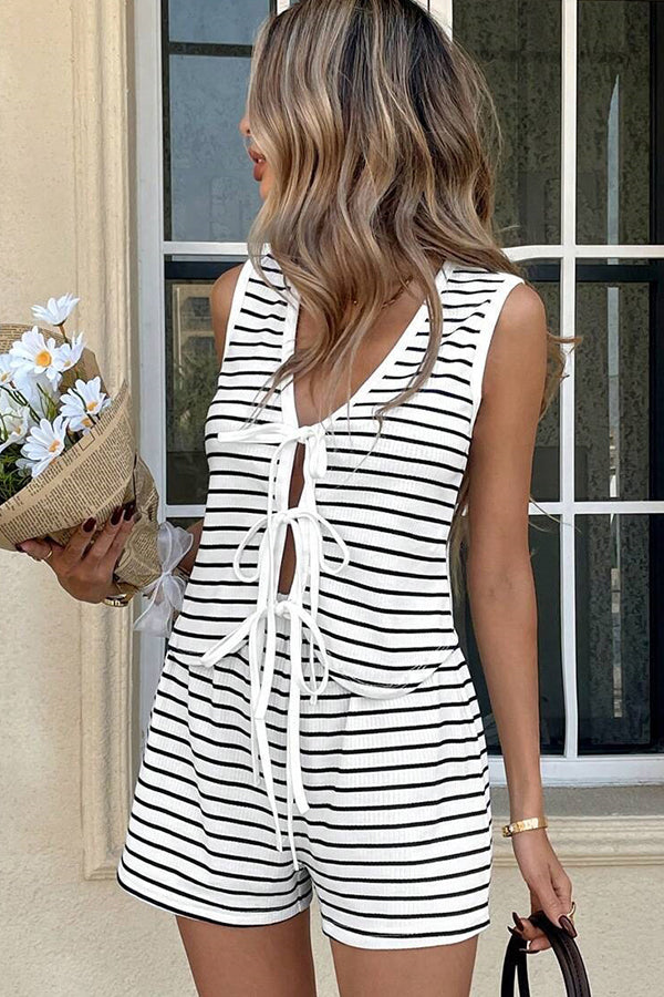 Fashion Stripe Print Tie Front Two Piece Set