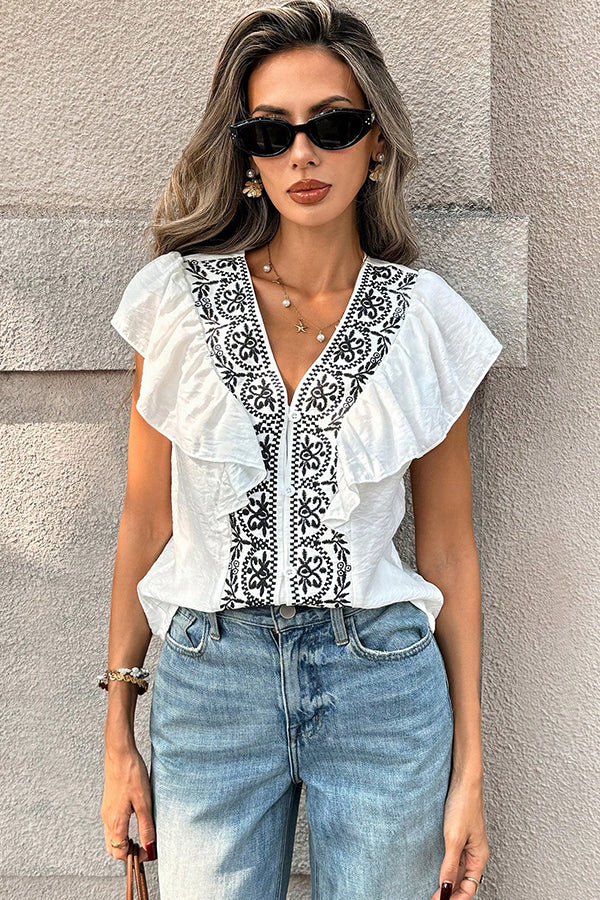 - French Style Ruffle V Neck Casual Tops