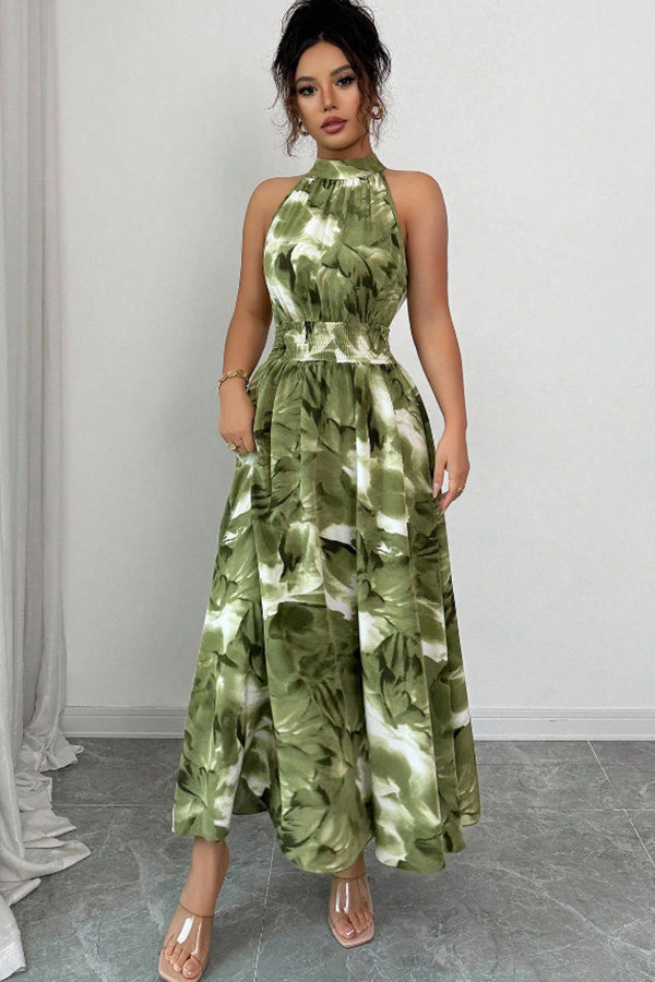 - Halter Neck Smocked Waist Casual Maxi Dress