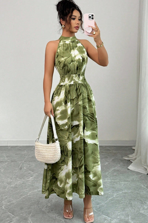 Halter Neck Smocked Waist Casual Maxi Dress