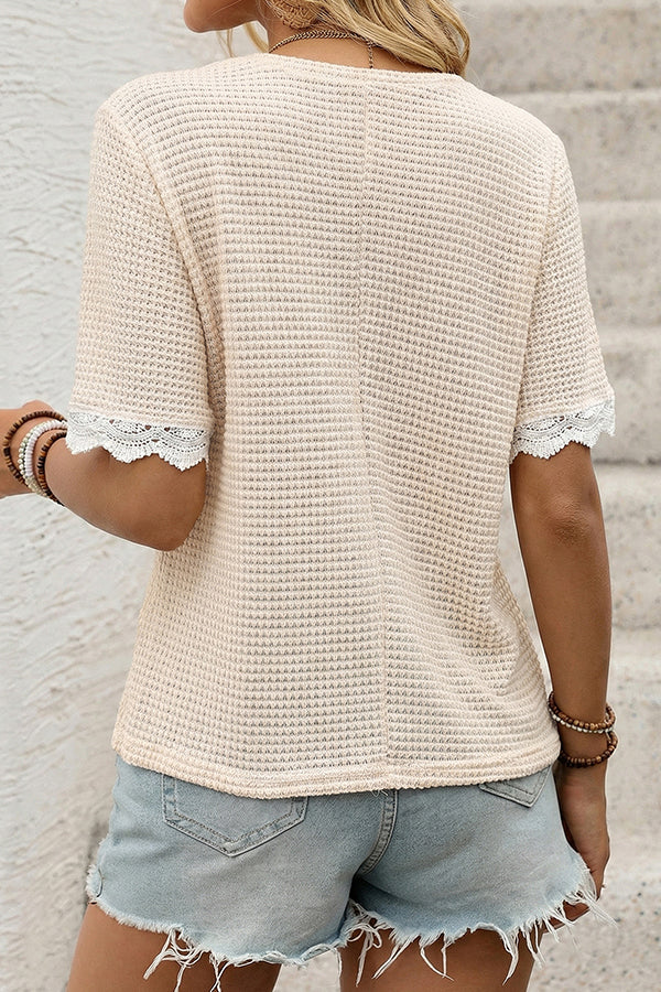 - Lace Patchwork V Neck Casual Tops