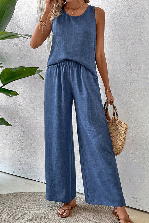 • Solid Color Hollow Back Casual Two Piece Set