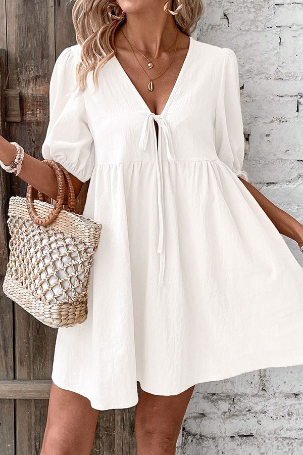 - Solid Color Tie Front Casual Mini Dress