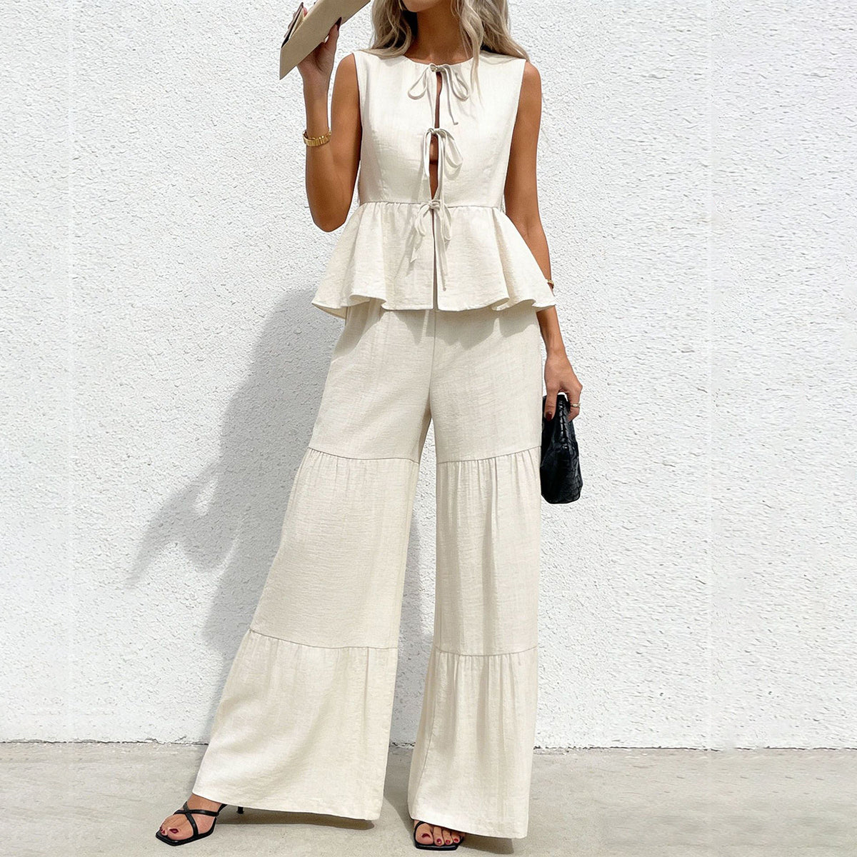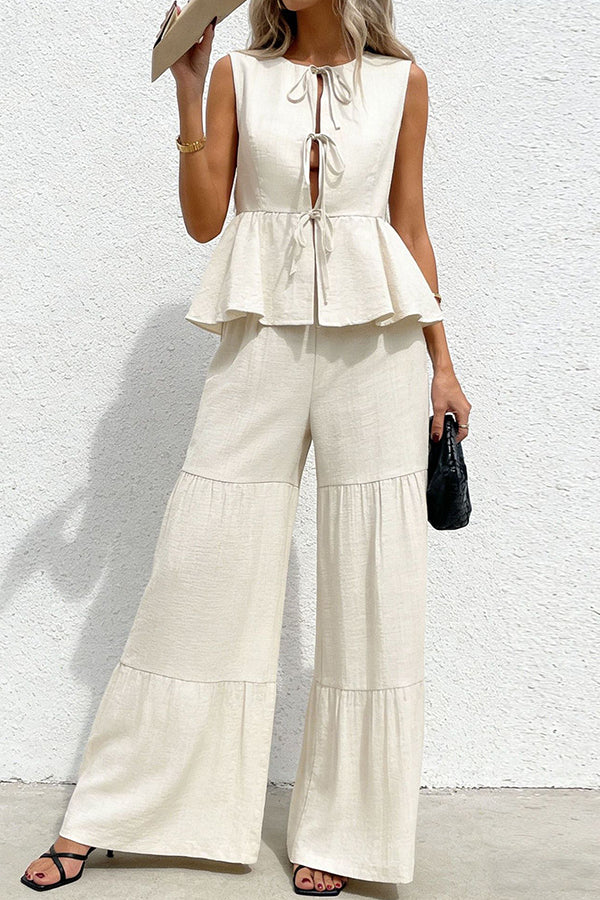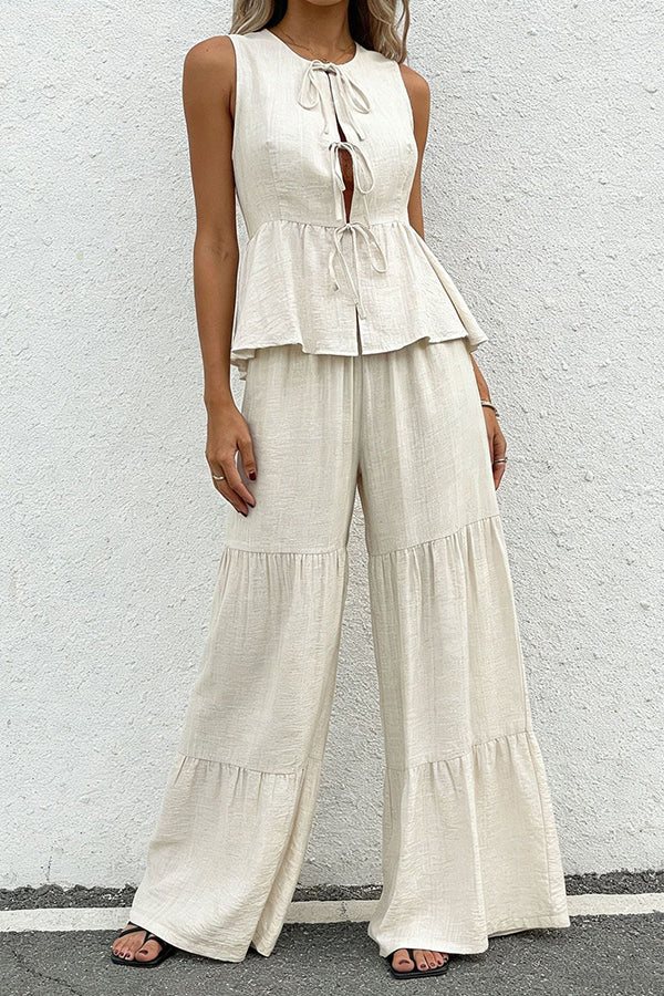 - Solid Color Tie Front Two Piece Set