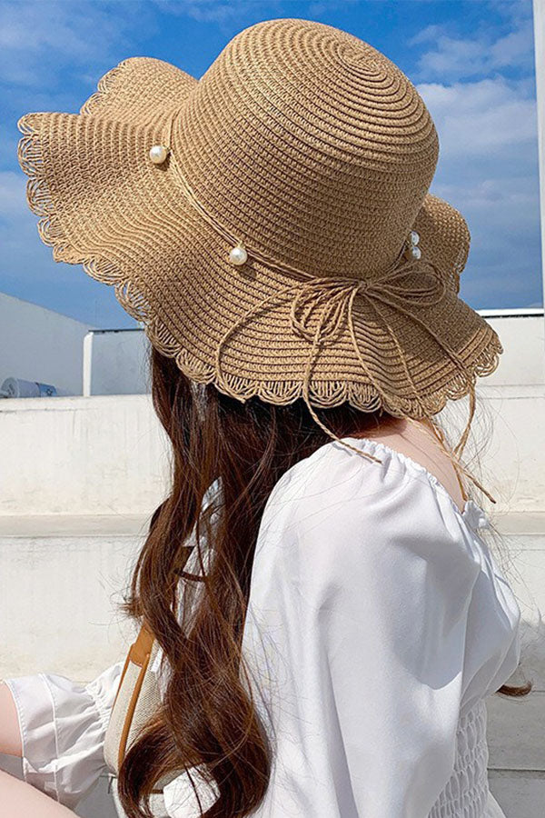 Women's Wave Beach Sun Hat With Faux Pearl