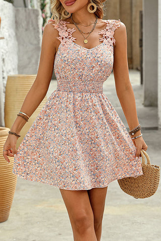 Modisches Maxikleid mit V-Ausschnitt, gesmoktem Brustbereich und Blumendruck