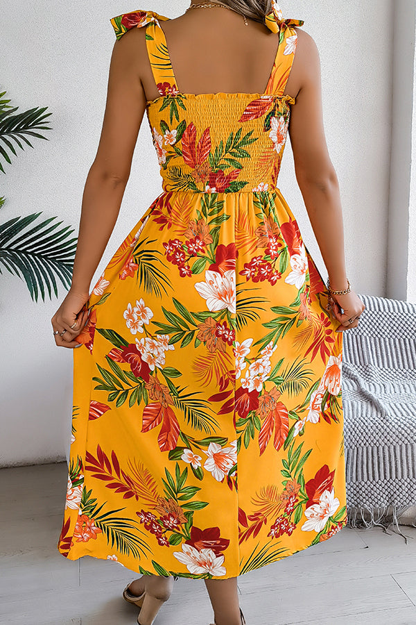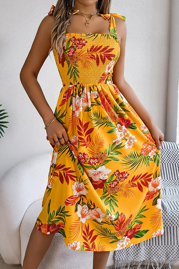 beachsissi Cute Smocked Design Floral Print Tankini Set