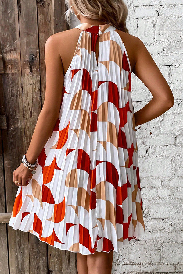 - Fashion Printed Pleated Mini Dress