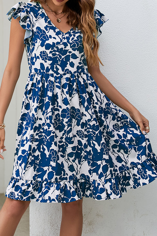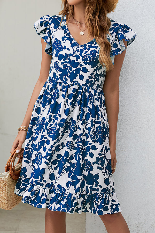 Fashion Printed V Neck Casual Dress