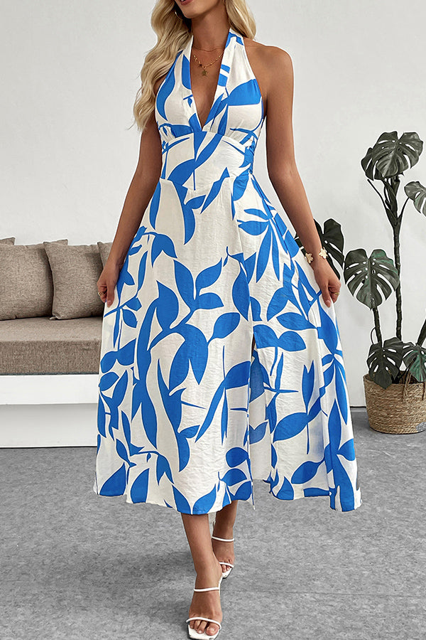 - Floral Print Halter Neck Casual Dress