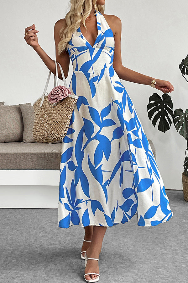 Floral Print Halter Neck Casual Dress