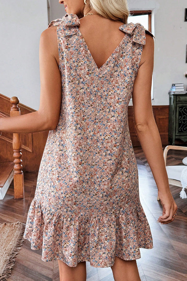 - Fashion Tie Shoulder Floral Print Mini Dress