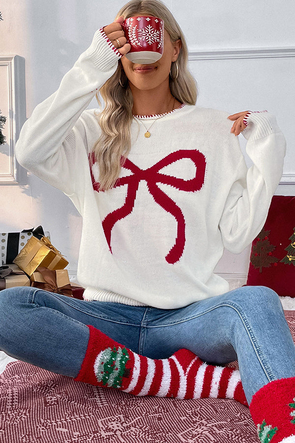 - Merry Christmas Loose Fit Round Neck Casual Sweater