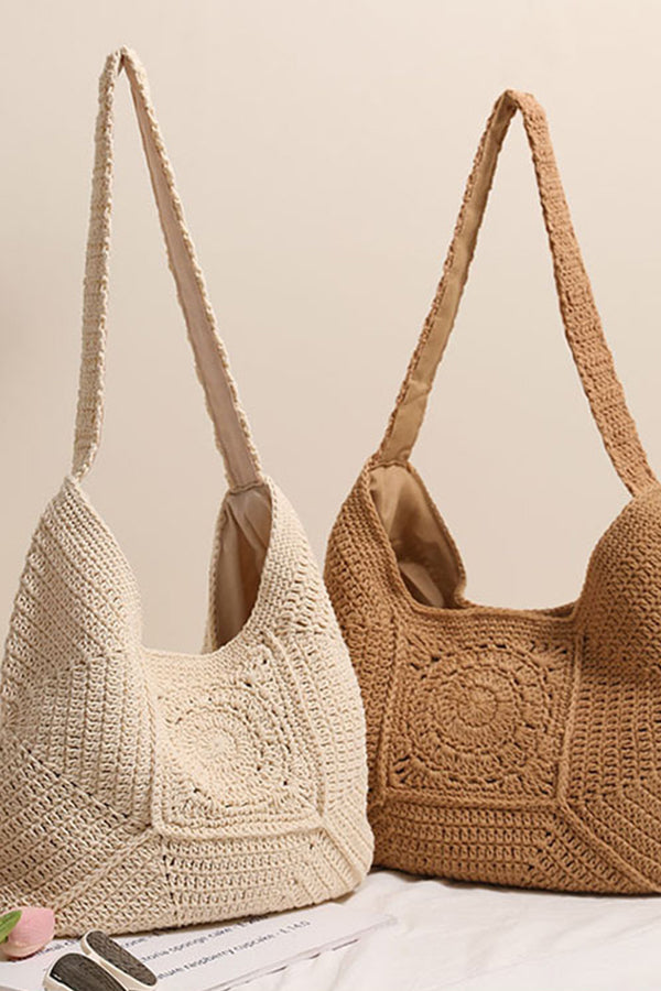 • Fashion Solid Color Hollow Weave Bag