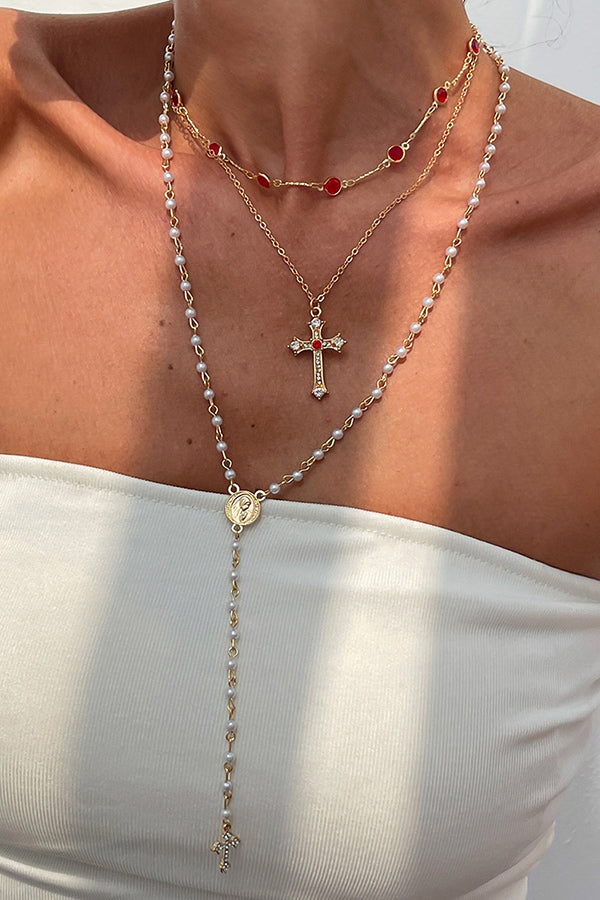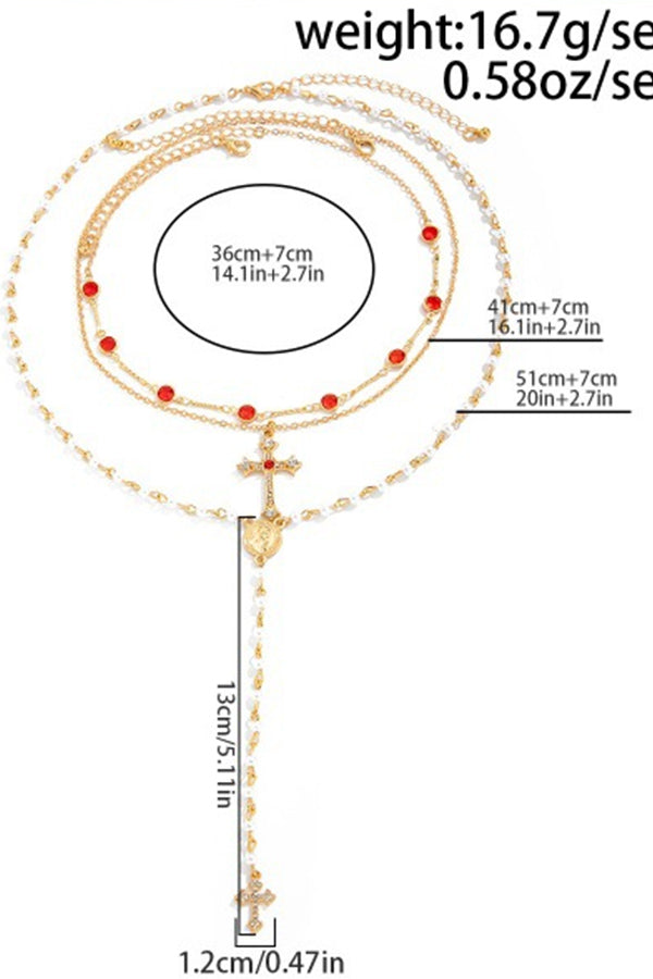 - Fashion Vintage Metal Cross Pendant Y-Necklace Set