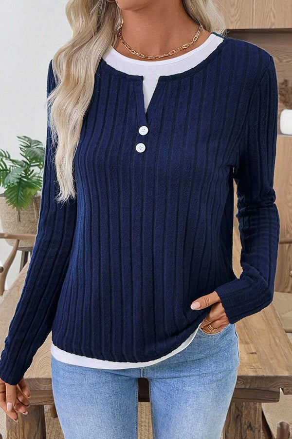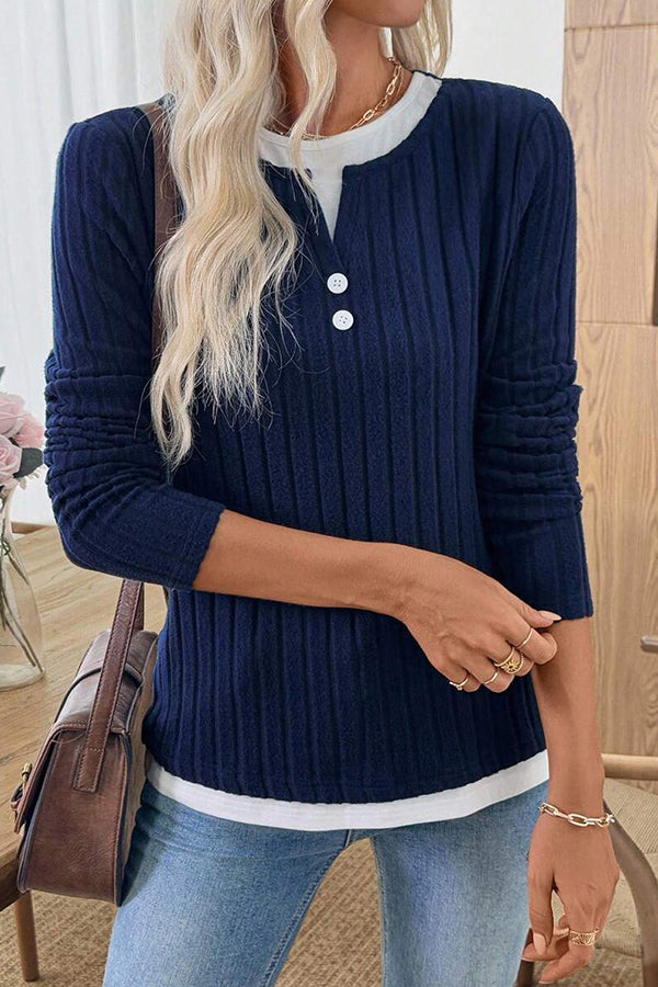 Round Neck Button Mock two-piece Casual Tops