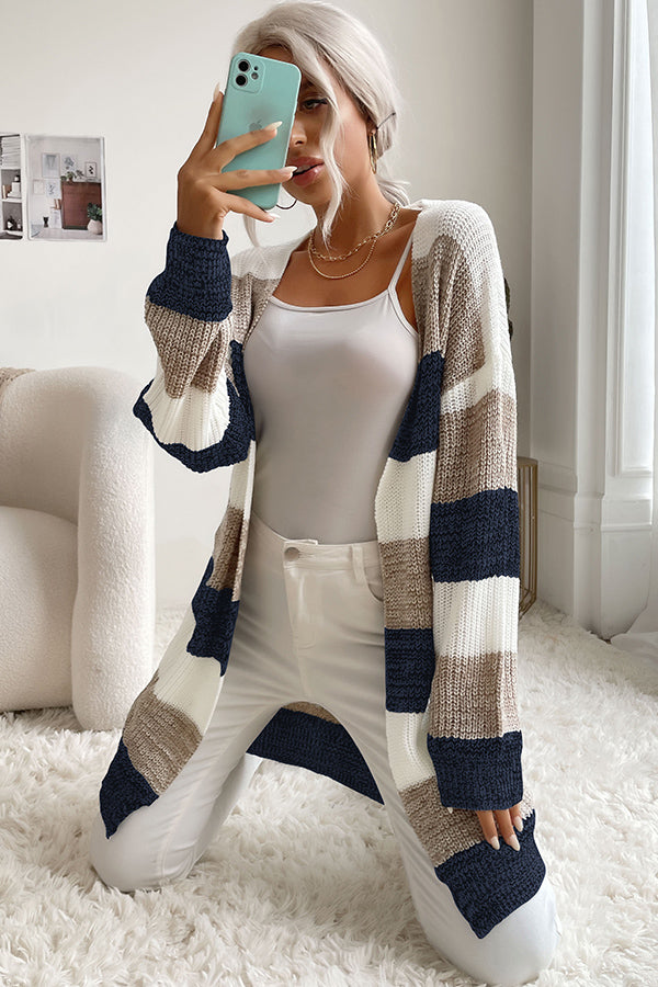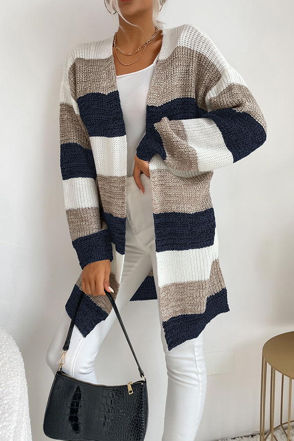 Fashion Color Block Stripe Print Casual Cardigan